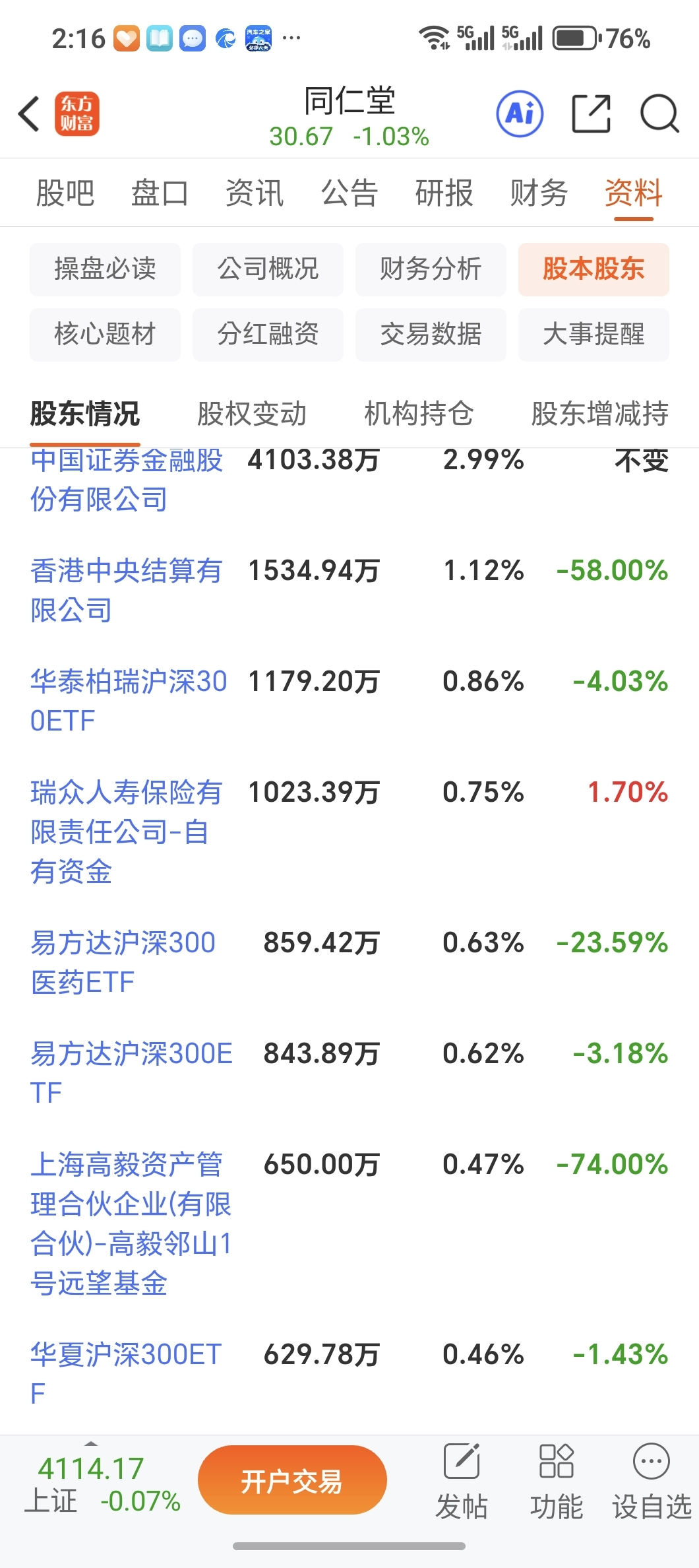 $同仁堂(SH600085)$ 怀疑9大股东全都清仓了