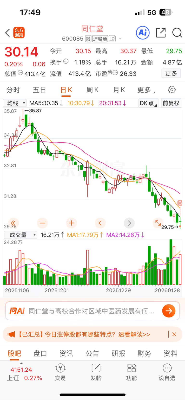 不知道是不是底部,忍了几个月终于等到30以下,既然到了就果断出手