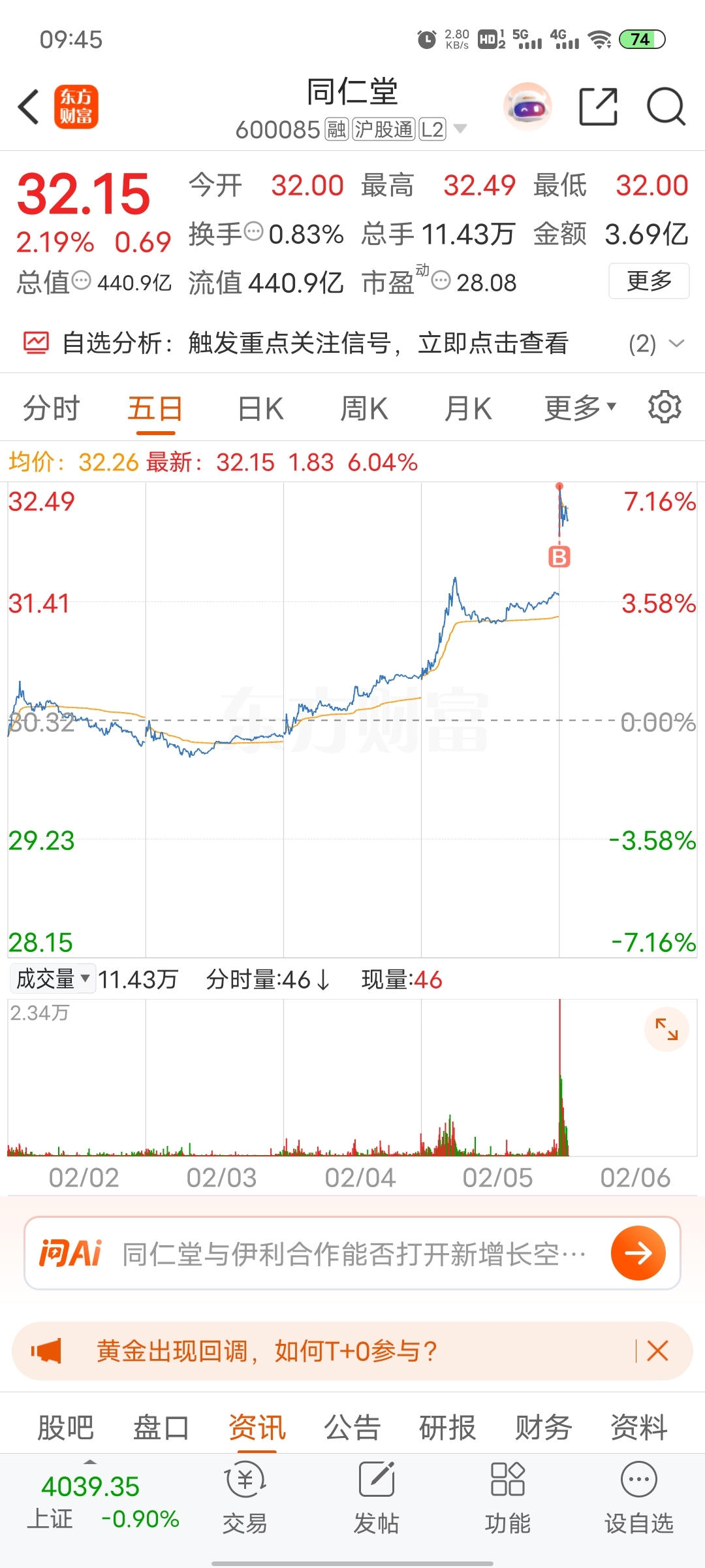 $同仁堂(SH600085)$ 挂树上了