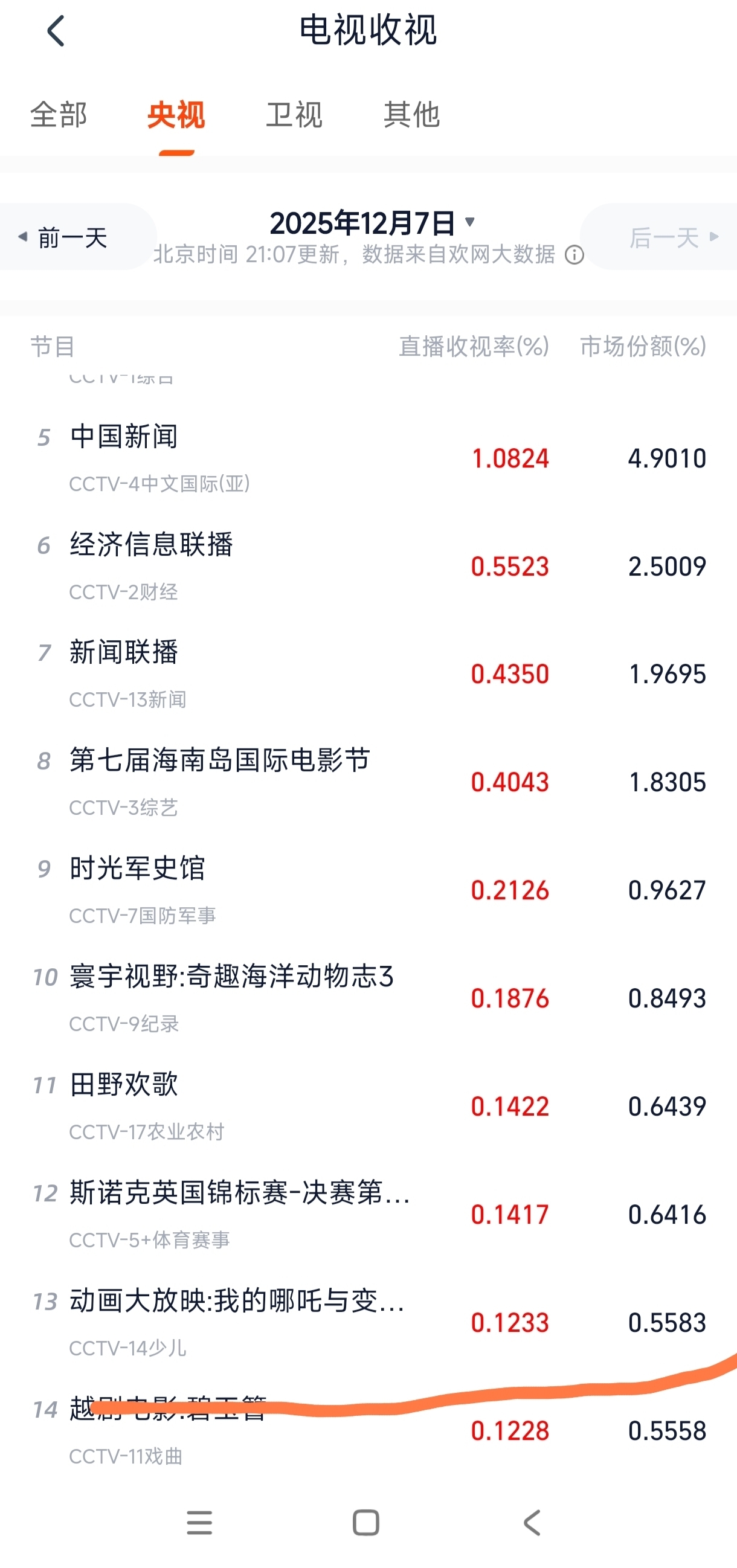 $中视传媒(SH600088)$ 今日收视,比昨天还差一丢丢,B站评分已经降低至5.3分了。