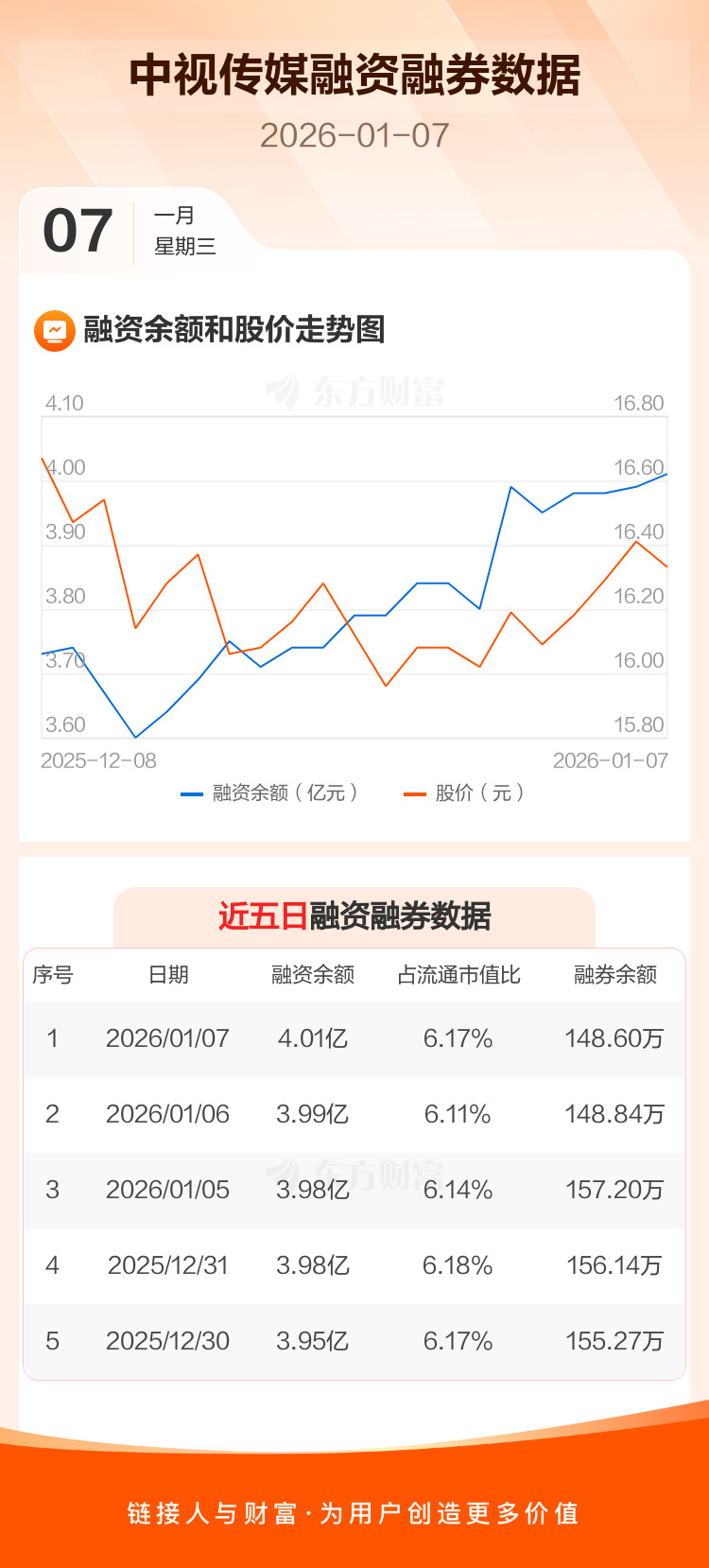 交易所最新数据显示,中视传媒于2026年1月7日获融资买入977.28万元,融资偿还735.51万元,当日融资净买入241.77万元。目前,该股融资余额4.01亿,占流通市值比例为6.17%。