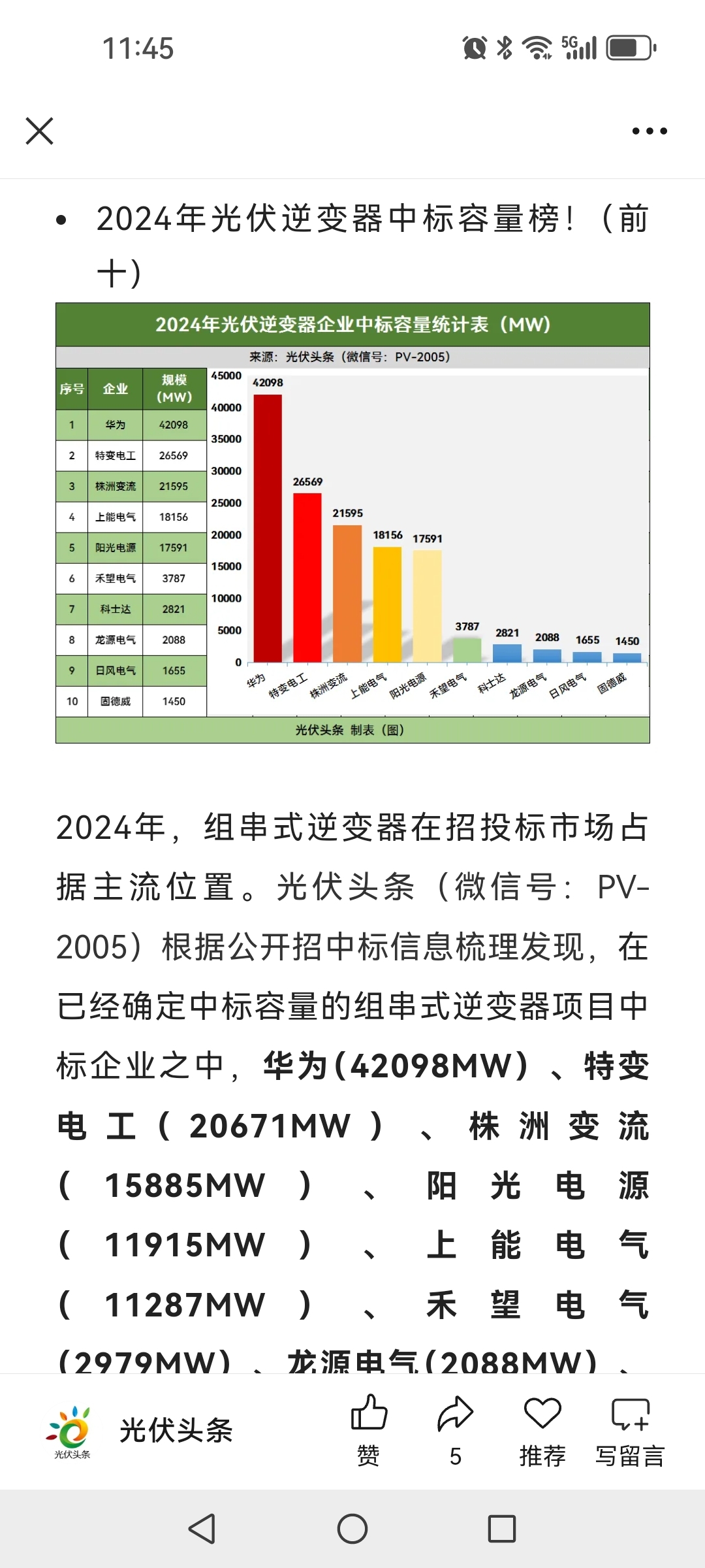 2024年光伏逆变器排名中,特变仅次于华为