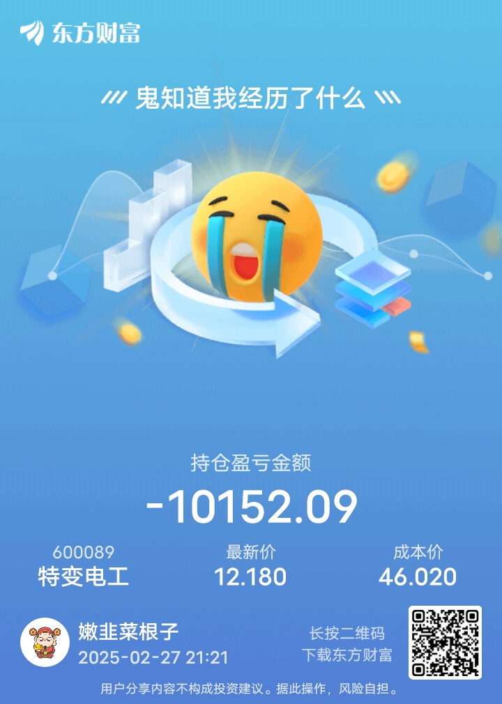温馨提示: 1.根据《证券法》规定,禁止编造、传播虚假信息或者误导性信息,扰乱证券市场;2.用户在本社区发表的所有资料、言论等仅代表个人观点,与本网站立场无关,不对您构成任何投资建议。用户应基于自己的独立判断,自行决定证券投资并承担相应风险。《东方财富社区管理规定》