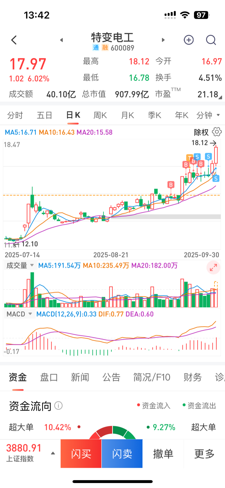 $特变电工(SH600089)$ 兄弟们继续发财,一般我卖了后都是卖飞胜宏、广生堂、新易胜等等都是这样