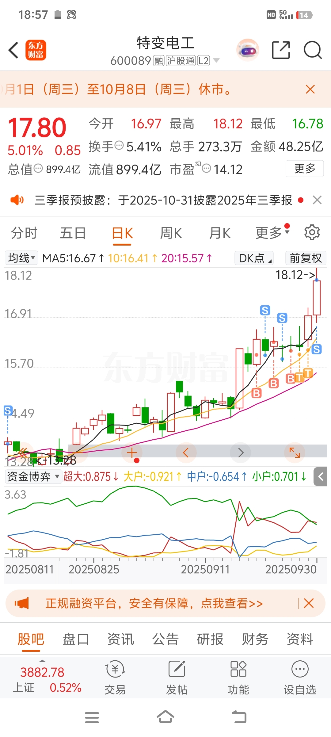 $特变电工(SH600089)$ 难道我真的卖飞了!周一还有低开的可能么?老粉们?