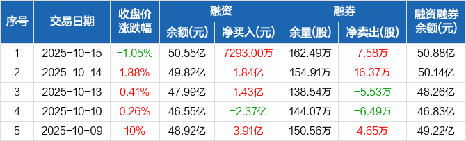 特变电工:融资余额50.55亿元,创近一年新高(10-15)