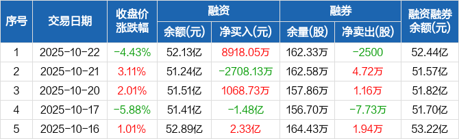 特变电工:融资净买入8918.05万元,融资余额52.13亿元(10-22)