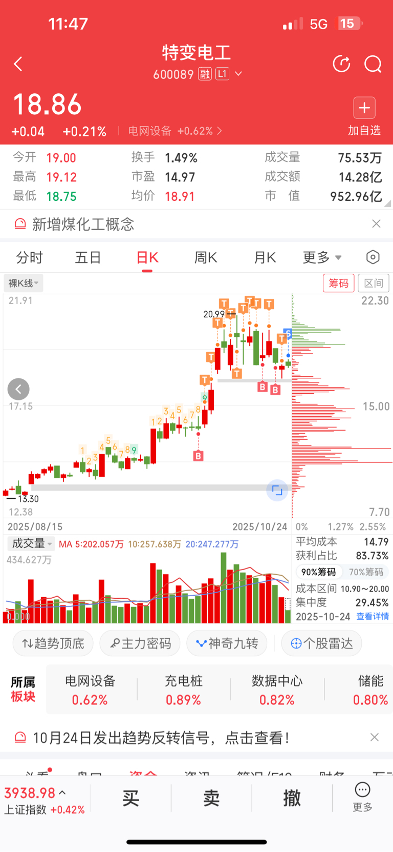 $特变电工(SH600089)$ 30个点离场,再见,感谢
