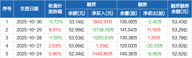 特变电工:融资净买入1842.91万元,融资余额53.14亿元(10-30)