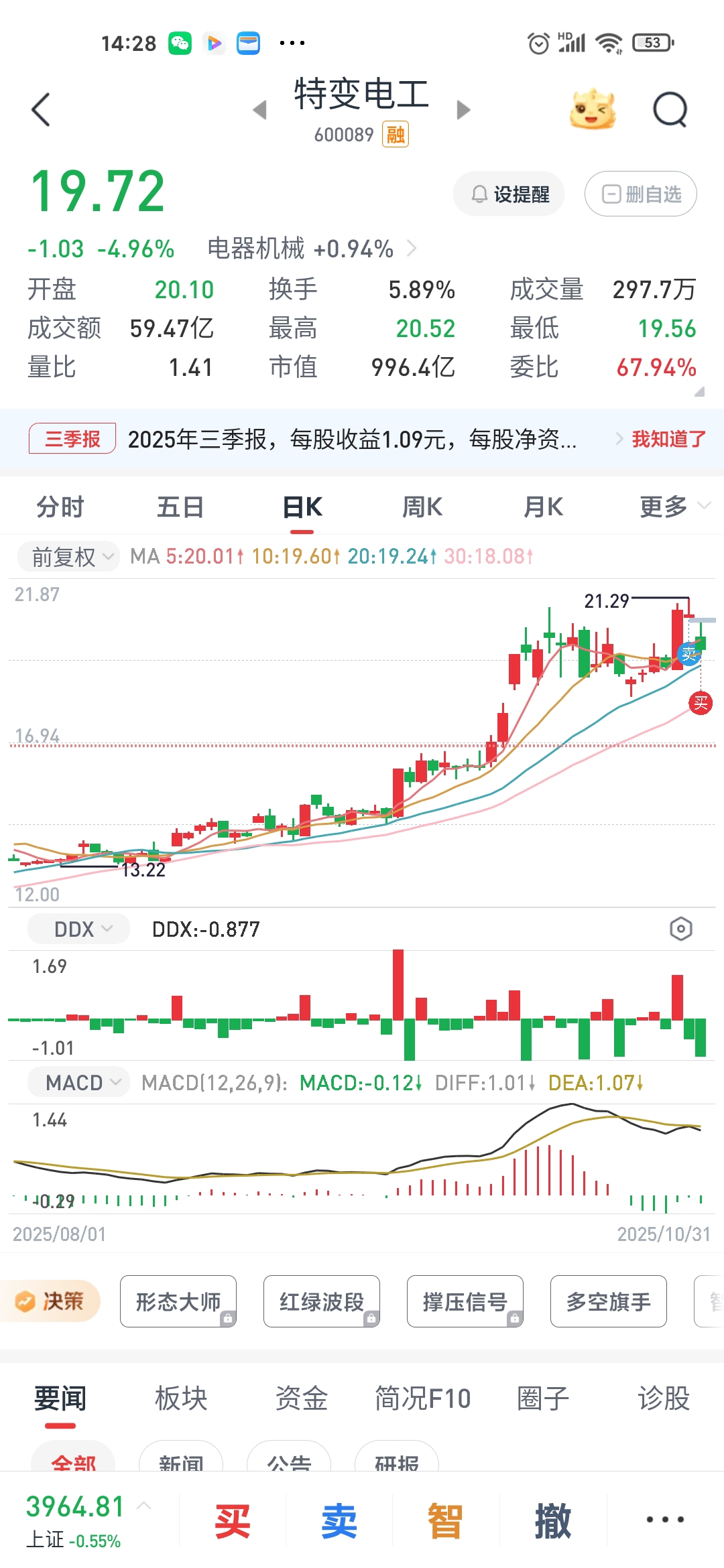 $特变电工(SH600089)$ 今天买回昨天卖出的一半,不信特变就在21元会止步