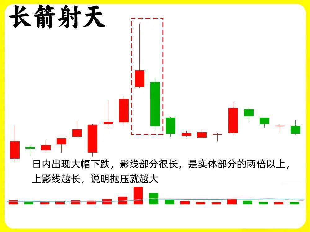 关键区分:与“仙人指路”不同——“长箭射天”出现在高位,是出货信号;“仙人指路”出现在低位或上涨初期,是主力试盘动作。