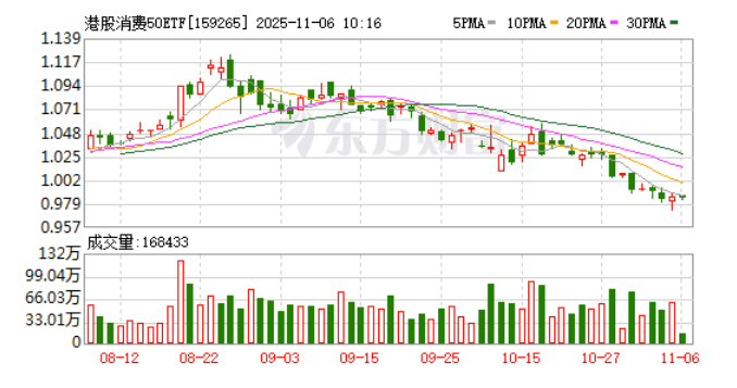 科技作为卫星仓位相对更有进攻性,港股消费50ETF(159265)作为核心仓位现在低位布局。我选的这个港股通消费权重分配更为均衡,年轻消费偏向更明显。其中某泡玛特、体育装备、啤酒饮料等都是年轻人更喜欢的消费品,也是所谓的“新消费”领域,同时兼顾线下消费、场景消费、家电等传统消费。