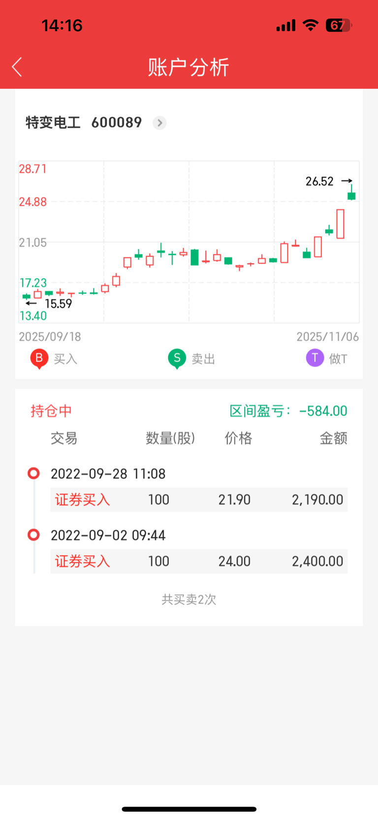 感谢主力,22年24买的,陆续操作了几次,今天解套了