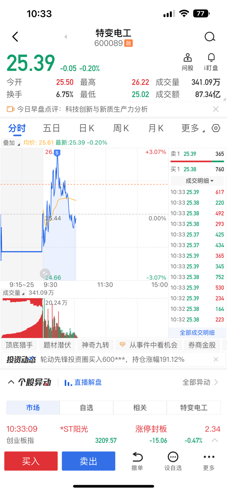 $特变电工(SH600089)$ 走弱了 暂时走了 后续再接回来