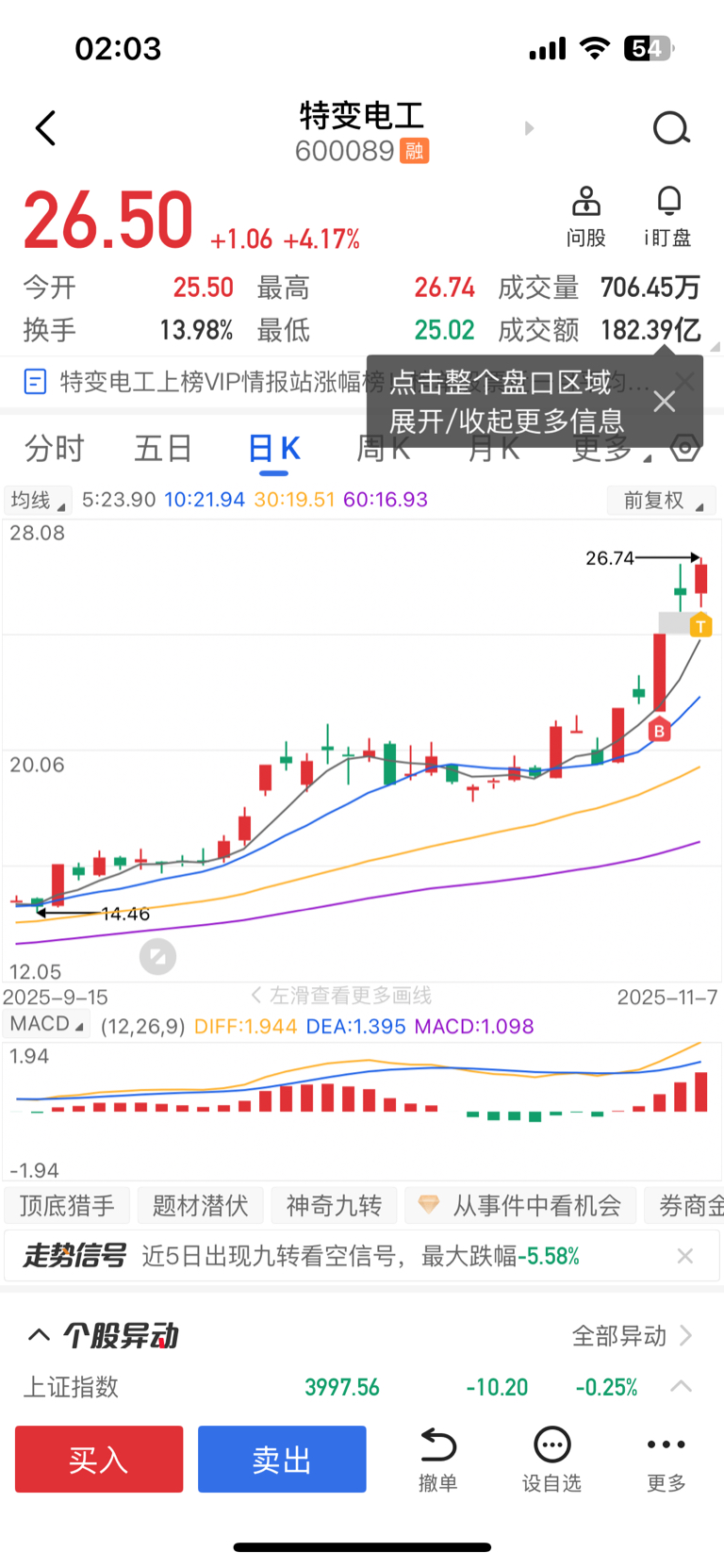 半仓三天成功吃到20个点。基本不操作,也看不懂特变的逻辑。跟随趋势吧。就这样十一