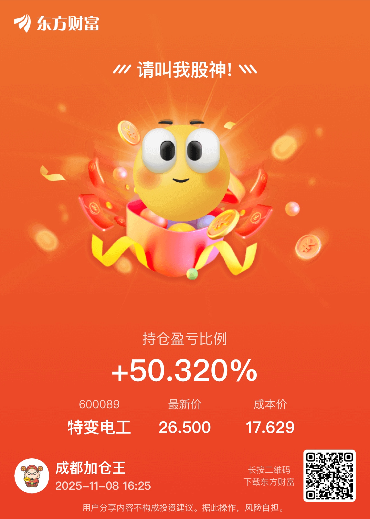 温馨提示: 1.根据《证券法》规定,禁止编造、传播虚假信息或者误导性信息,扰乱证券市场;2.用户在本社区发表的所有资料、言论等仅代表个人观点,与本网站立场无关,不对您构成任何投资建议。用户应基于自己的独立判断,自行决定证券投资并承担相应风险。《东方财富社区管理规定》