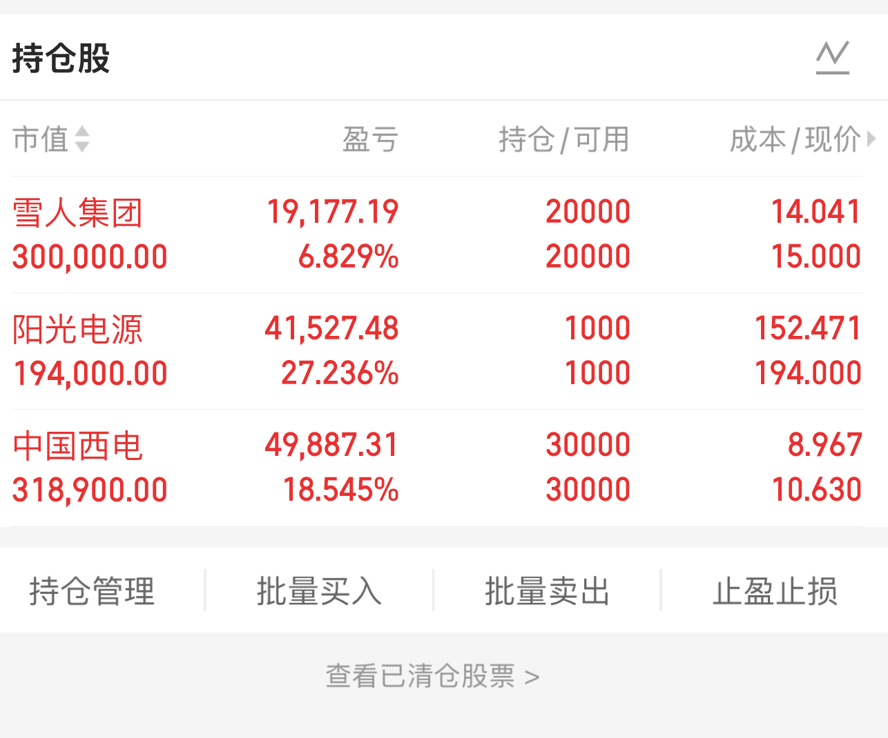 目前手上持有情况: