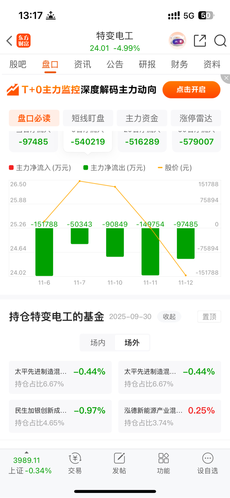 $特变电工(SH600089)$ 前几天放巨量就已经到头,看看这几天出了多少货,这还只是净流出