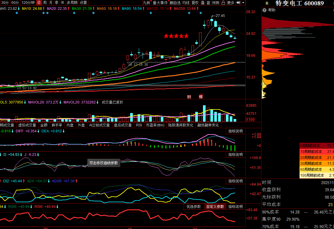 本贴第一幅截图有几人看懂的?提示一下,下面的筹码为老的股东压舱石,不可能让新入驻的资金与其平起平坐,所以,后知后觉的资金或从高估值向低估转移的资本会不失时机的捡漏浮筹,从特变电工的日成交量以眼见的速度迅速递减来看,这个区域想见到廉价筹码非常的困难,眼见技术调整的参数迅速回到合理的位置,浮筹在迅速的衰竭,这预示着后来资本必须加快步伐捡漏,否则,没有更多的机会供其选择,不难推测特变电工的股价将出现在各路资本的抢购风中迅速的崛起,因为,有谁能阻止廉价估值的诱惑?某些机构资本哪种一股独大的武断行径已经一去不复返了!所以,散户投资者看好了你就果断的介入或增仓加码,以免错失良机