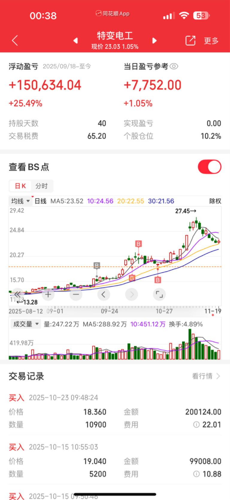 $特变电工(SH600089)$ 这是几年来选择的第三只重要的票。虽然利润回撤了,但是我还是选择坚持持有,利润回撤并不是坏事情,可以稳定情绪和有机会加仓。