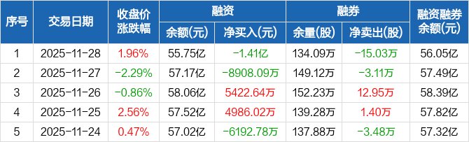 特变电工:融资净偿还1.41亿元,融资余额55.75亿元(11-28)