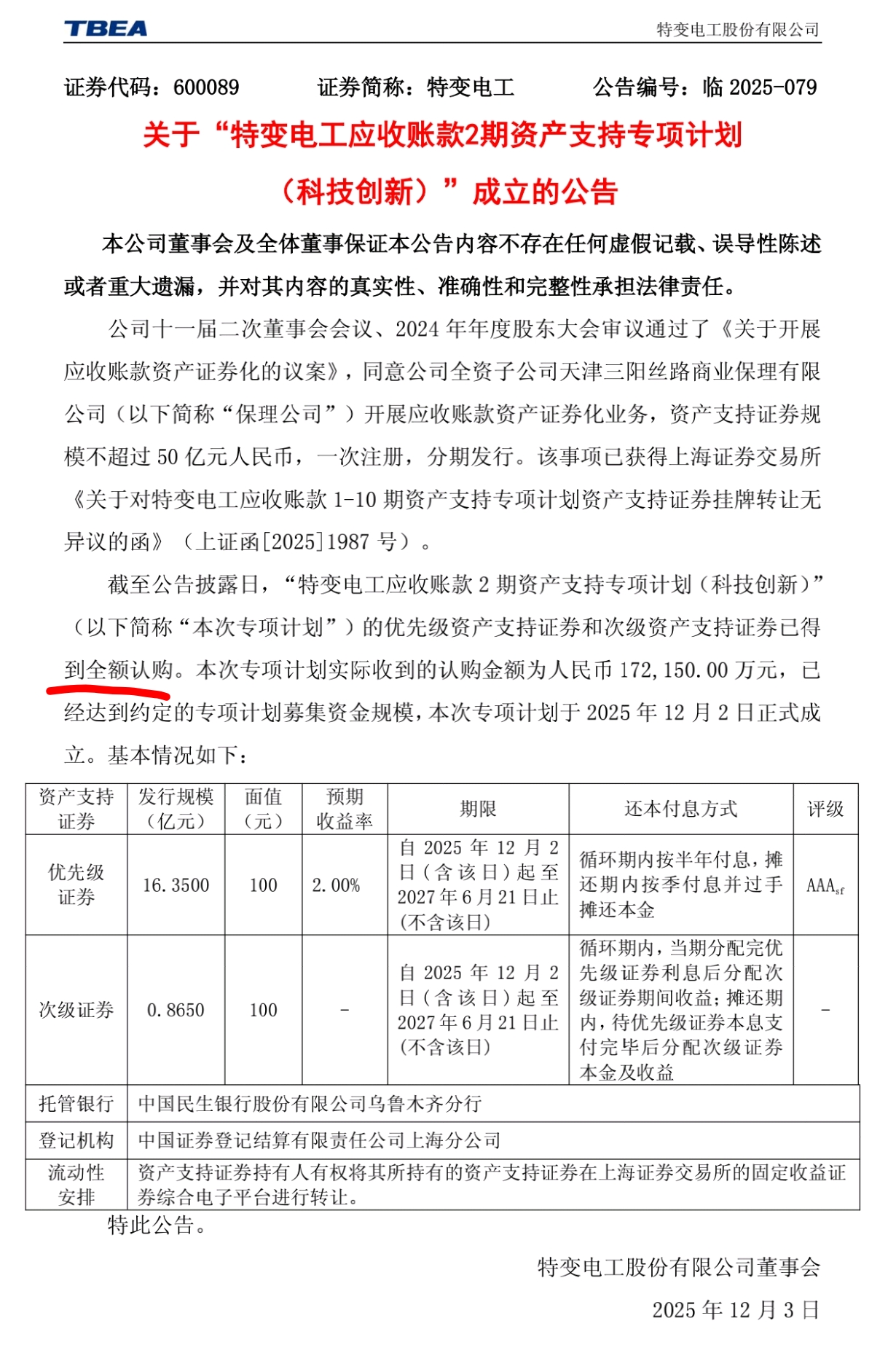 $特变电工(SH600089)$ 全额认购是市场对资产证券化产品信心的体现!属于大利好