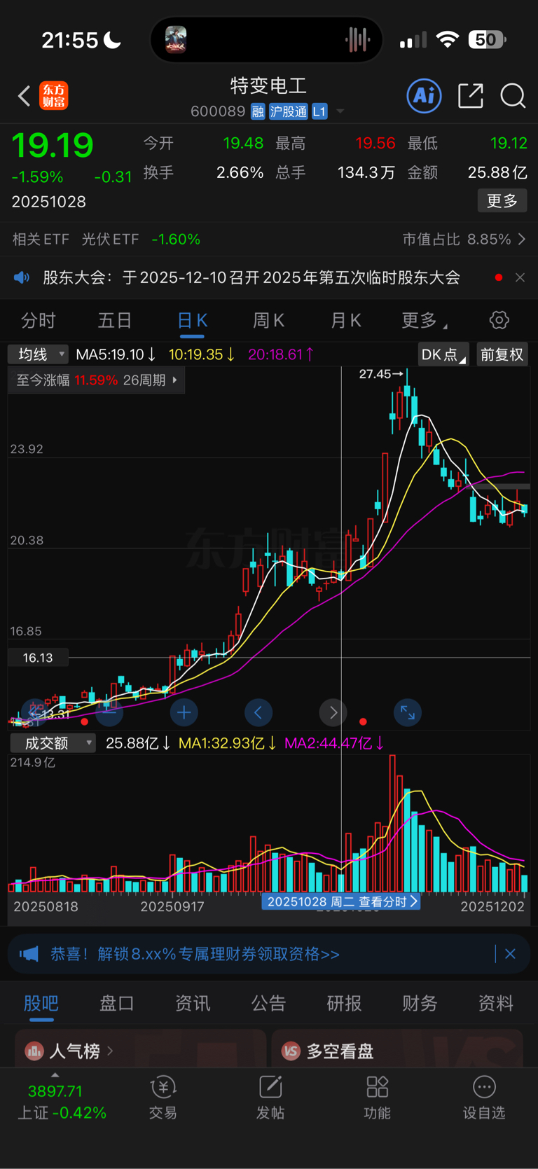 今天和10月28的有点像的感觉:前两天反弹当日缩量回调~算个命,明天特变收个中阳