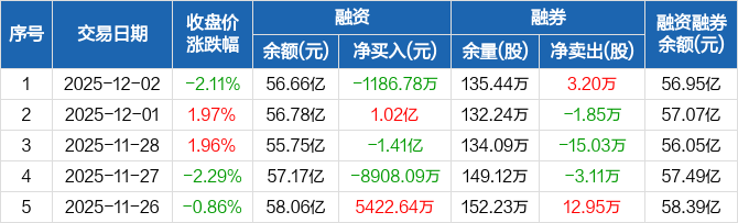 特变电工:融资净偿还1186.78万元,融资余额56.66亿元(12-02)