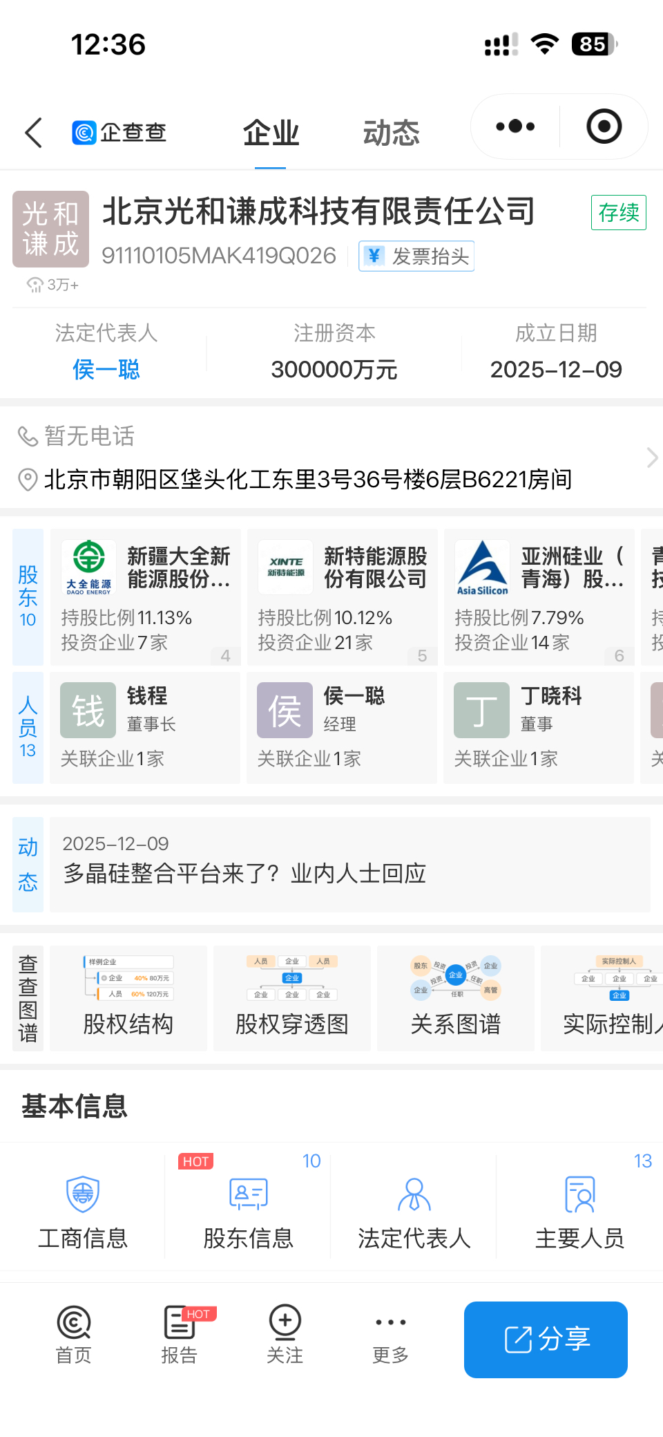 旗下新特能源持有光和谦成10%股份