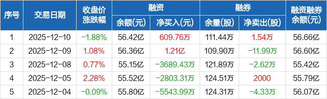 特变电工:融资净买入609.76万元,融资余额56.42亿元(12-10)