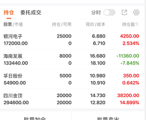 目前继续持有四川金顶,轻仓进场孚日股份,海南发展,较大仓位进场银河电子。在本周的所有交易中,海南发展是唯一在收盘后出现较大幅度亏损的个股,希望明天它能够来一个高开,保本出场。