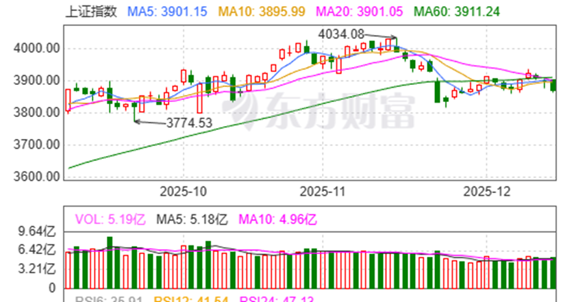 昨夜美联储降息25个基点,接过A股今天利多出尽变利空,直接低开低走,其中沪指直接跌破3900点并最终收于3868点,深成指和创业板今天分别下跌1.23%和1.35%,两市成交量保持在昨天的1.8万亿水平。昨天在晚上复盘时本贴提过如果今天指数不能拉上去的话就危险了,今天的情况真是一语中的。目前来看,缩量下跌往往说明跌势未止。马上要到2025年末尾了,资金普遍有结算需求,这时候除非有什么重大政策催化,否则很难发动趋势性上涨行情。