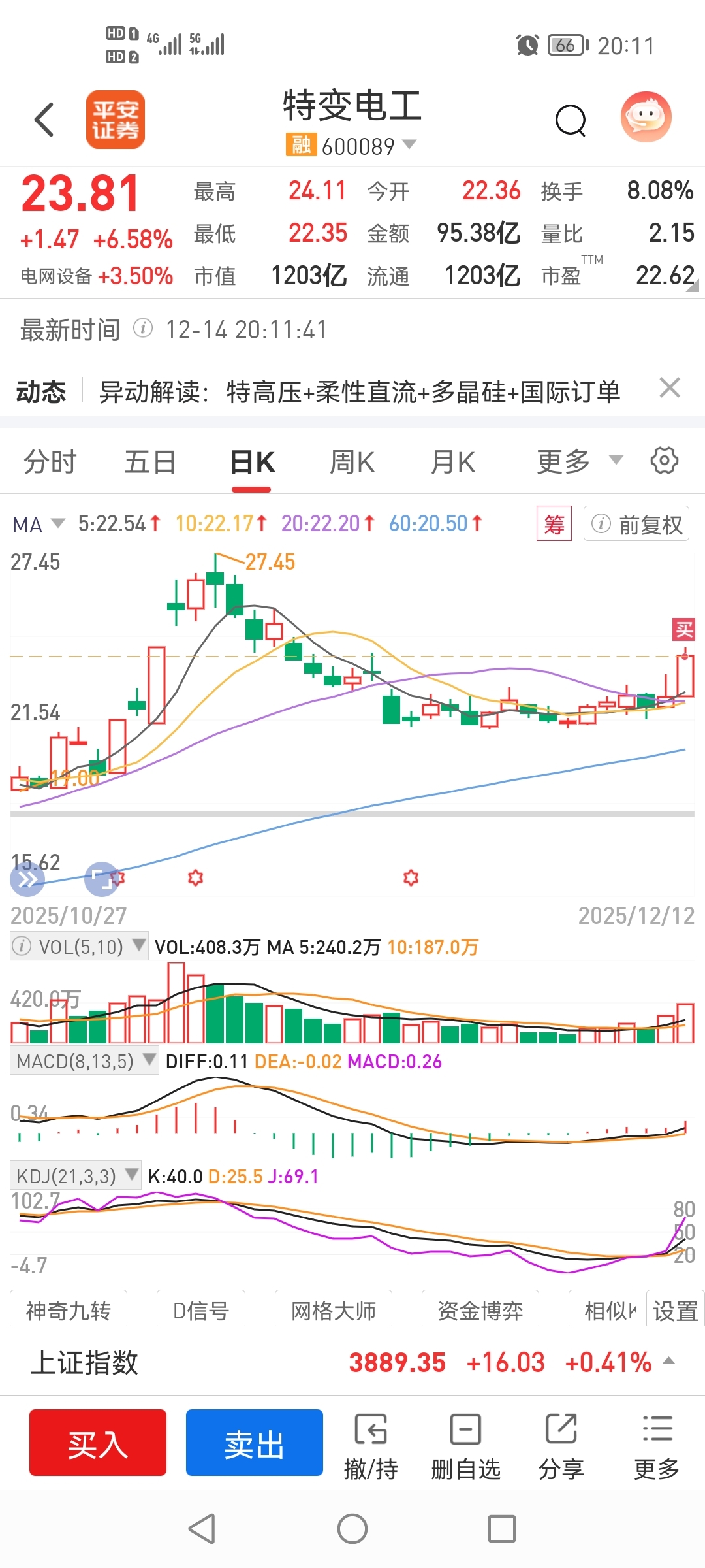 $特变电工(SH600089)$ 明天看看是吃肉,还是吃焖棍!