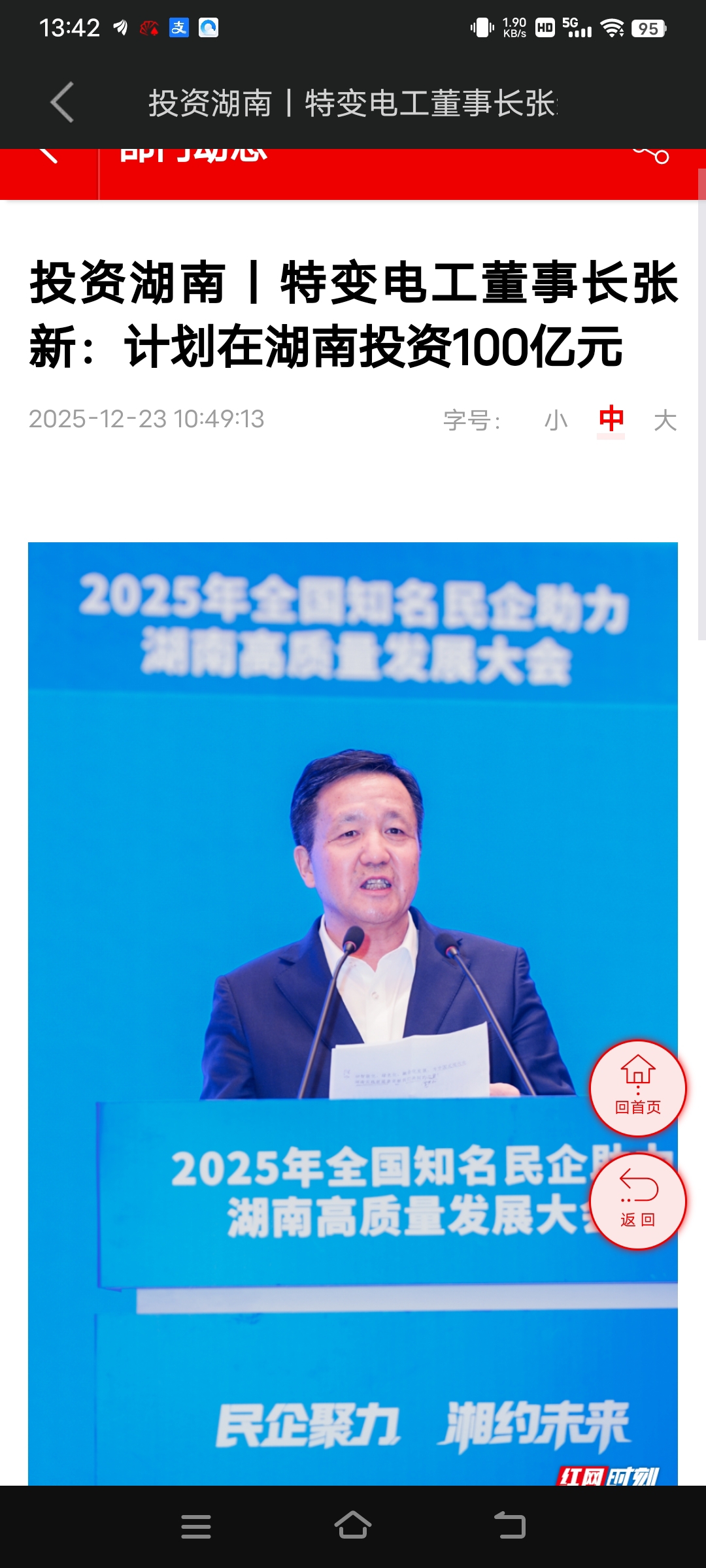 “特变电工是湖南高质量发展的见证者、亲历者和践行者。”12月22日,在2025年全国知名民企助力湖南高质量发展大会上,全国工商联副主席,特变电工党委书记、董事长张新进行了分享。