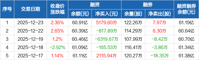 特变电工:融资净买入5179.6万元,融资余额60.91亿元(12-23)