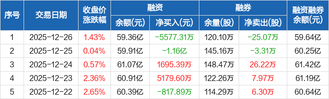 特变电工:融资净偿还5577.31万元,融资余额59.36亿元(12-26)