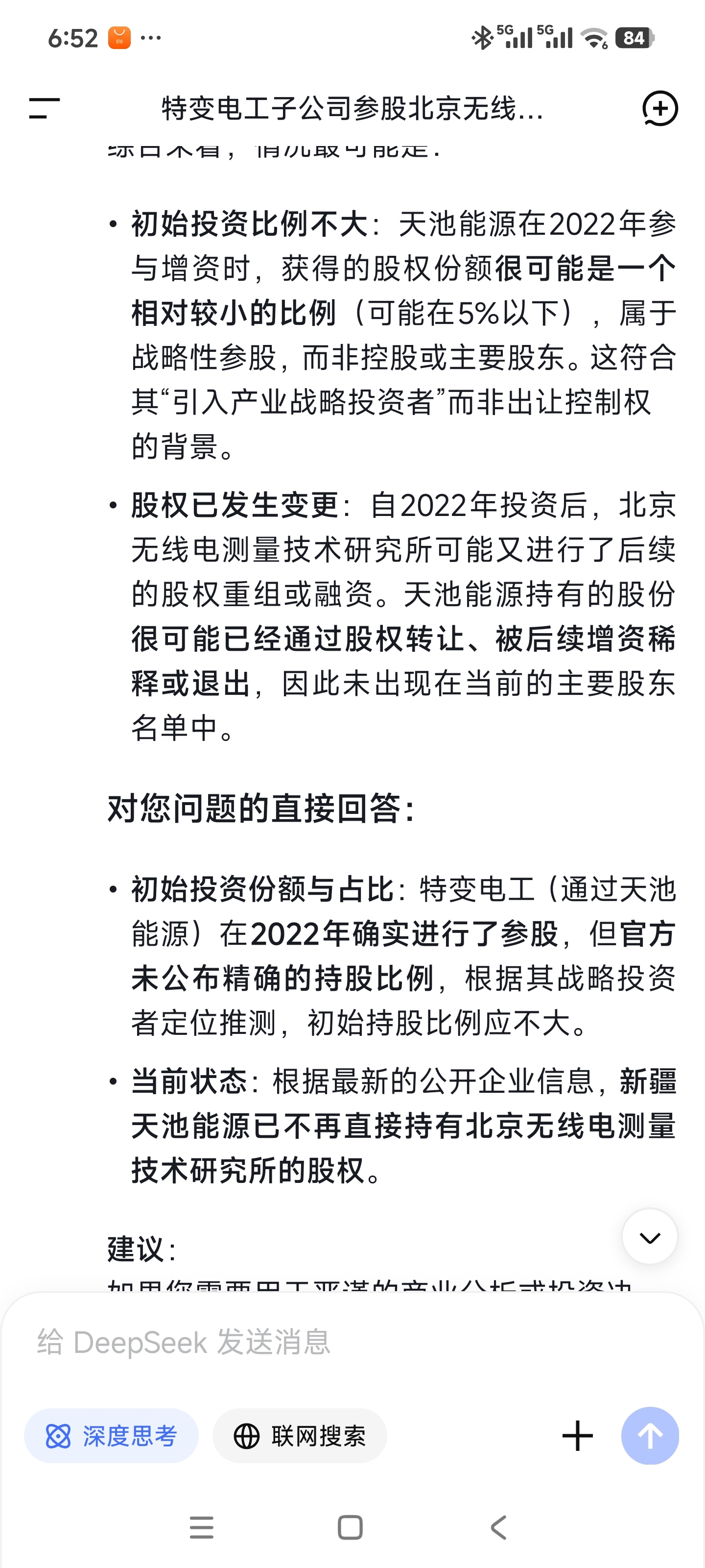 $特变电工(SH600089)$ 看到许多人拿豆包搜索的结果说事,我就用deepseek去搜索了一下,给出的答案见截屏。