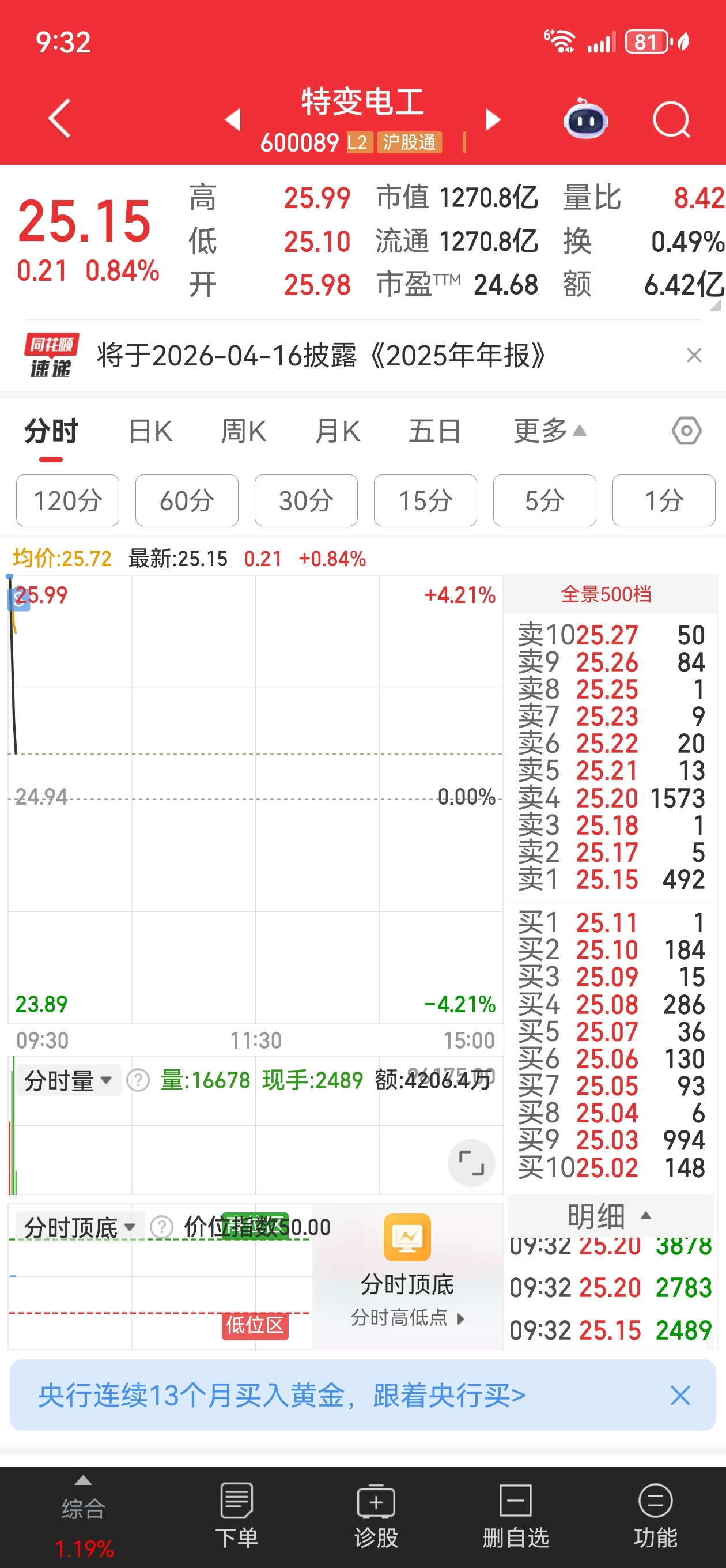 $特变电工(SH600089)$ 25.99居然卖出去了