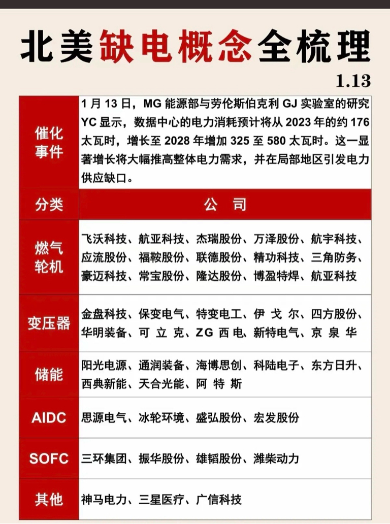 1月13日,美国能源部报告,美国数据中心电力短缺,尤其是AI电力需求爆发。
