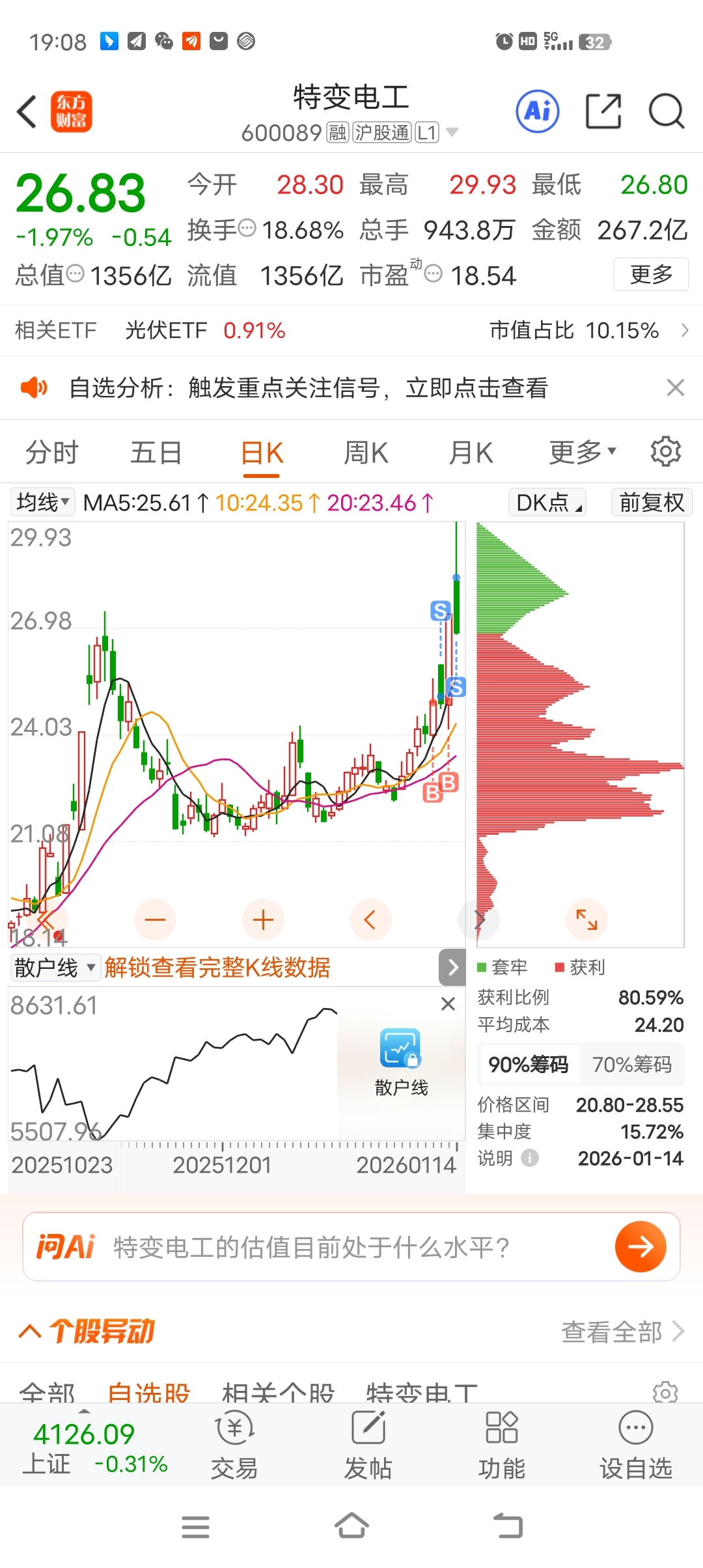 $特变电工(SH600089)$ 吃了14个点走了谢谢主力