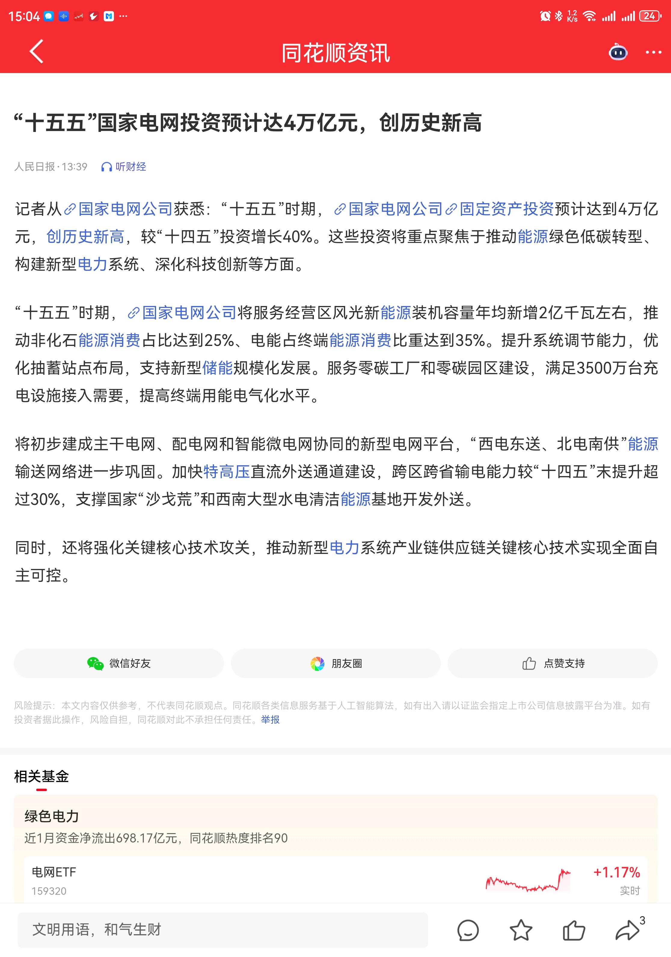 $特变电工(SH600089)$ 国家电网十五五投资4万亿元,创历史新高,重点西电东送和特高压,这些都是特变电工的强项