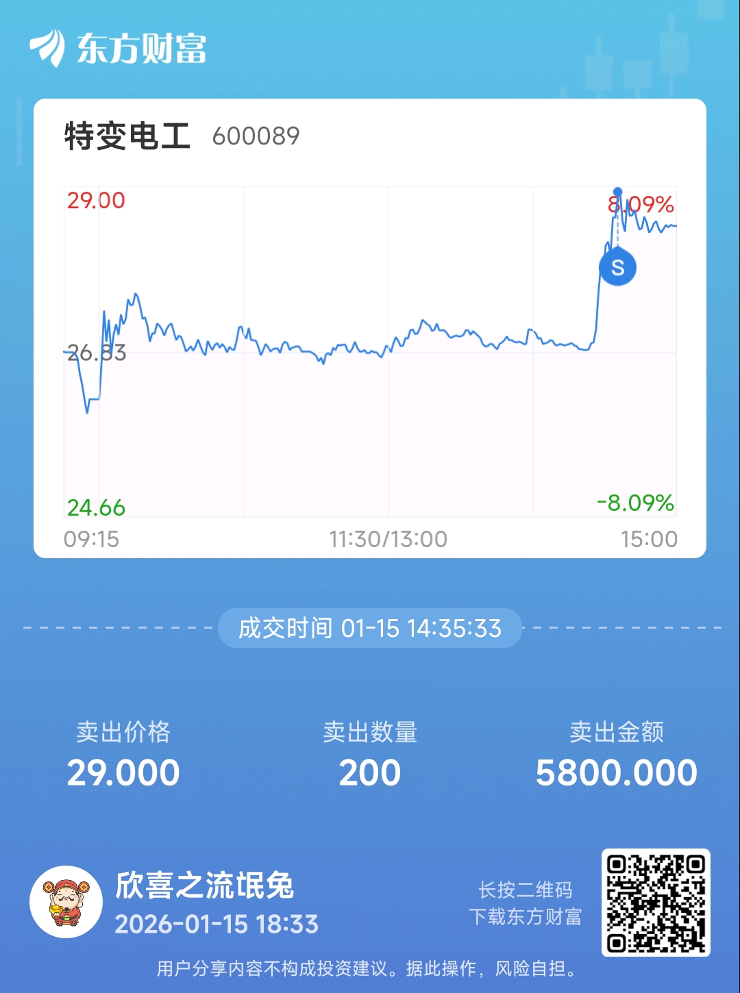 温馨提示: 1.根据《证券法》规定,禁止编造、传播虚假信息或者误导性信息,扰乱证券市场;2.用户在本社区发表的所有资料、言论等仅代表个人观点,与本网站立场无关,不对您构成任何投资建议。用户应基于自己的独立判断,自行决定证券投资并承担相应风险。《东方财富社区管理规定》