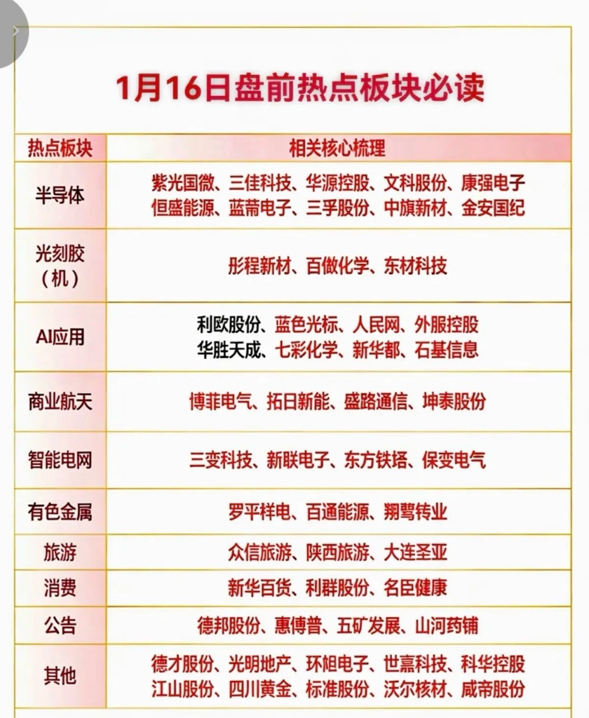 1.16周五市场热点+投资方向!1.半导体设备2.光刻胶光刻机3.智能电网4.商