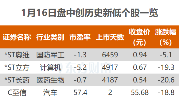 东方财富Choice数据显示,今日有4只个股盘中股价创历史新低。