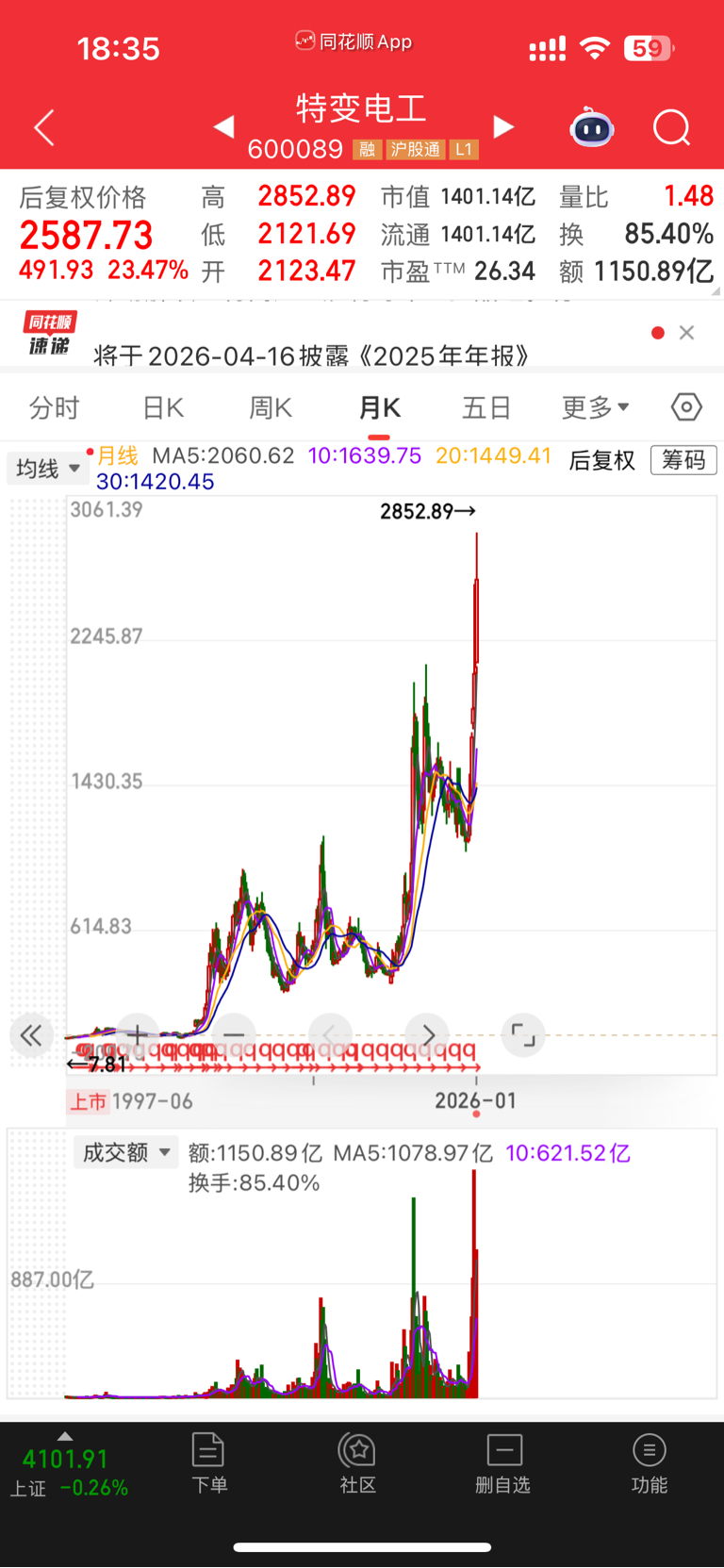 $特变电工(SH600089)$ 看似20多元的股票,从1997年上市到现在复权价格2857元,还能往上炒吗