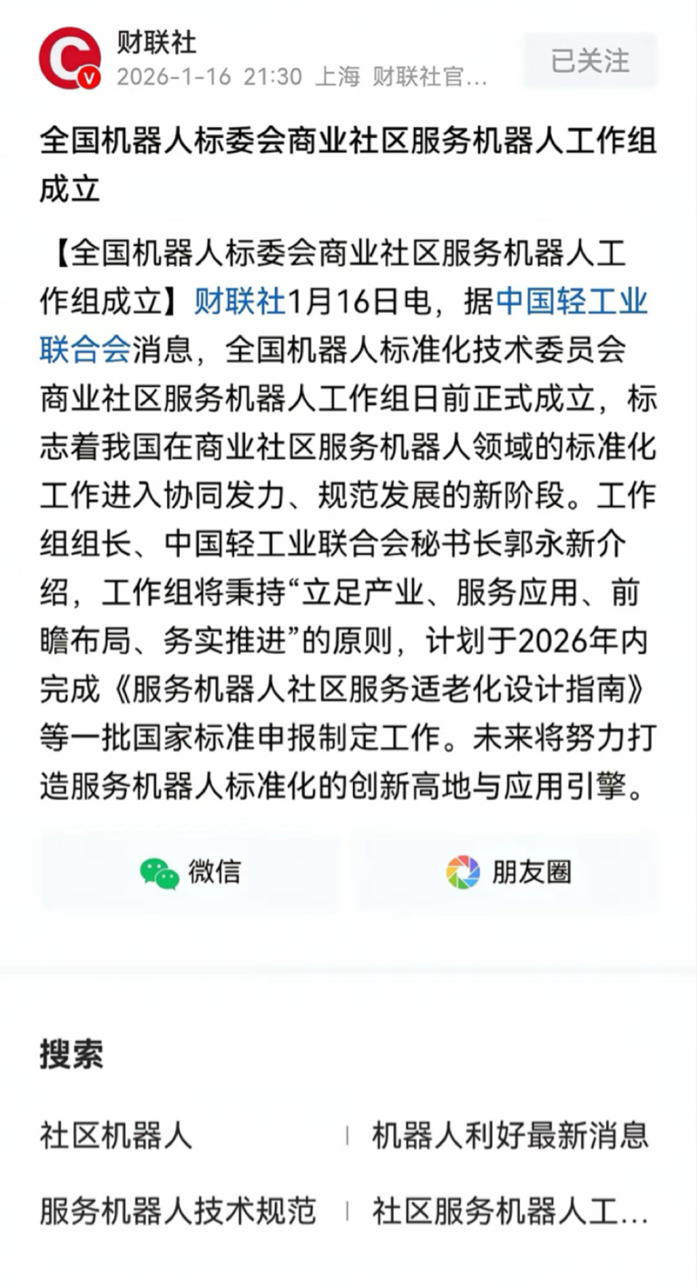 该炒什么呢?真是愁人啊!想破脑袋,也想不出来炒什么最好,还是看看消息吧。社区服务机器人工作组成立了,机器人将再度登上央视春晚,中午电视又讲了好几分钟的机器人……机器人的消息真的有点多啊$特变电工(SH600089)$ $兆易创新(SH603986)$ $金太阳(SZ300606)$