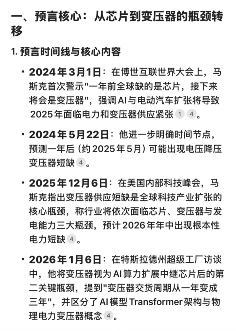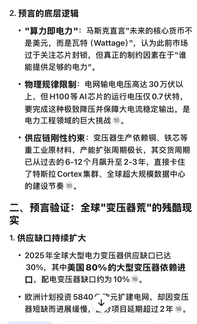 $特变电工(SH600089)$ 马斯克2024年3月1日的关于变压器神预言已经成为残酷的现实。