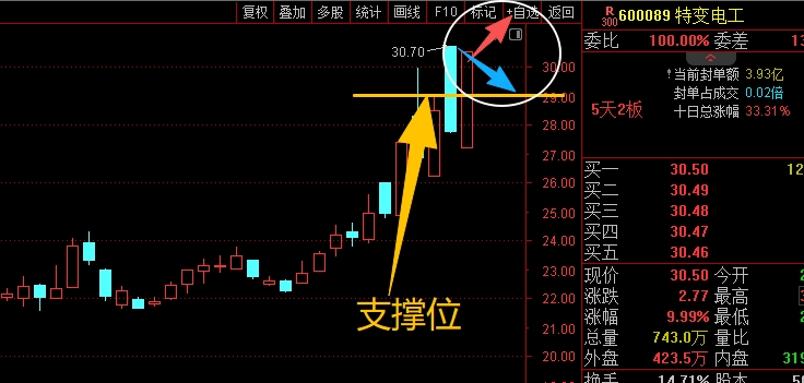 $特变电工(SH600089)$ 近期走势非常强,连续大拉升回落再拉升,不断新高,不过中间的震荡比较能洗盘,不太好把握,今天涨停,接下来就看能否继续拉高,继续新高,如果回调的话就看横线位置的支撑情况,能稳住就没问题,但有效跌破就要注意短线的回调风险了,需要控制仓位应对。#炒股日记# #收盘点评#