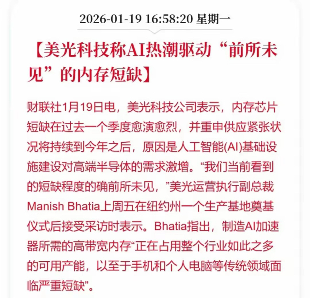 据悉,美光科技公司表示:过去一个季度存储芯片涨价愈演愈烈,AI热潮驱动存储芯片需求加速,目前存储芯片已经是前所未有的短缺。
