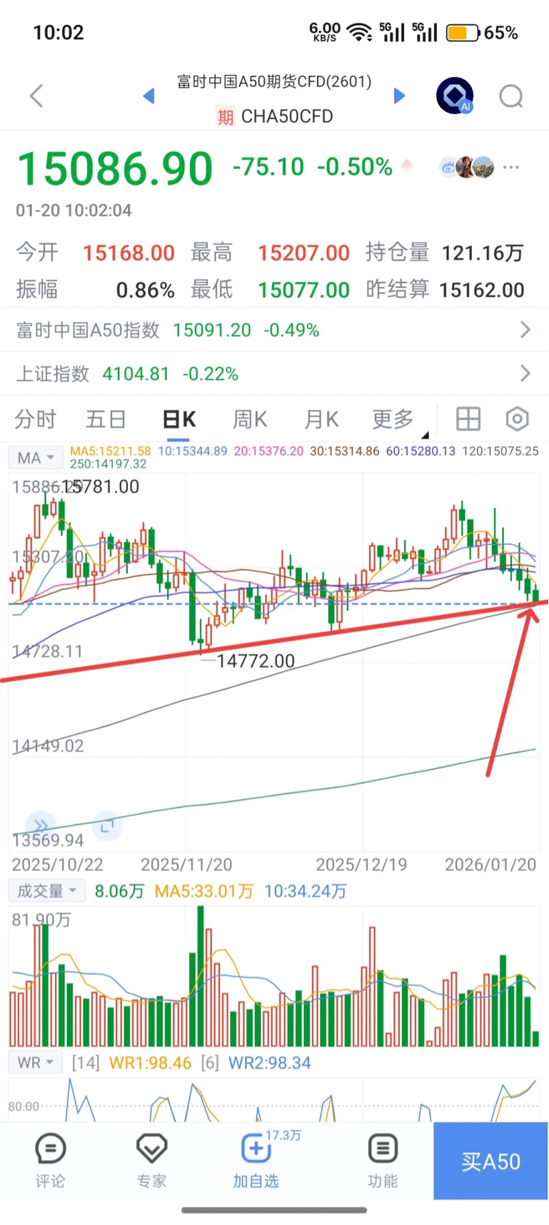 先说观点,富时A50股指触及120日均线支撑,所有指标都处于底部,因此,往下空间不大。